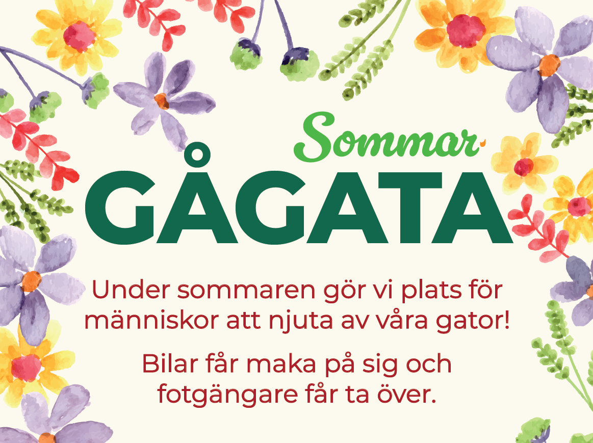 Under sommaren gör vi om delar av centrum till sommargågata – för att skapa mer plats för människor, rörelse och sommaraktiviteter.