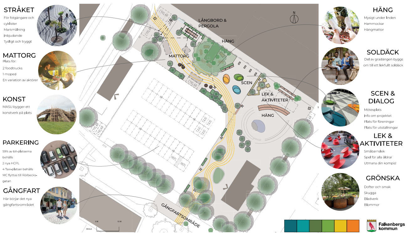 – Vi vill skapa ett torg där alla känner sig välkomna, där det finns något för alla och där vi samtidigt kan samla in tankar och idéer om hur Stortorget ska utvecklas på sikt, säger Hanna Lundgren, projektledare, Falkenbergs kommun.