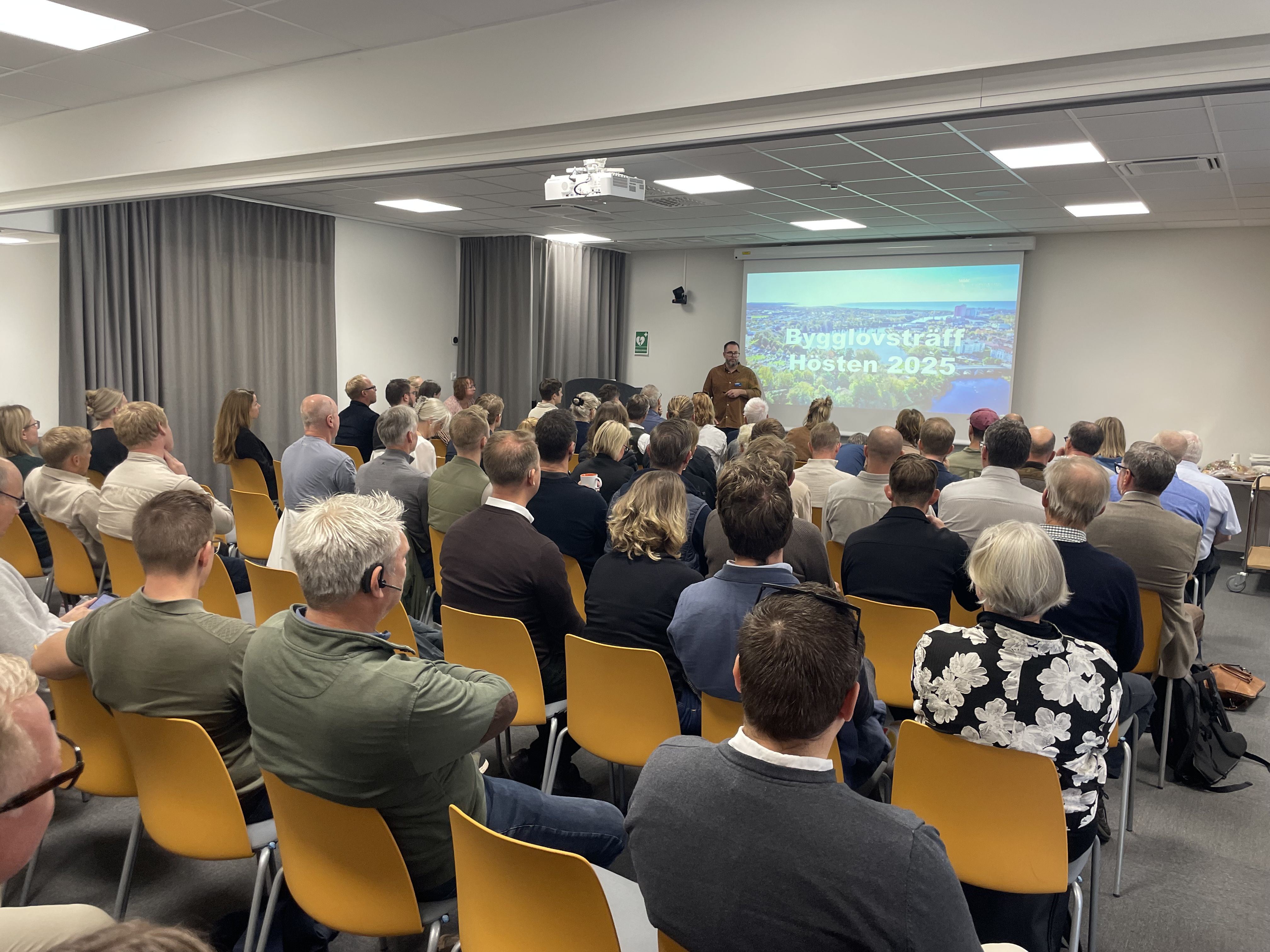Över 60 personer från bygg- och fastighetsbranschen i Falkenberg samlades i Sparbankshallen den 2 oktober för en genomgång av de nya byggreglerna som började gälla den 1 juli 2025.