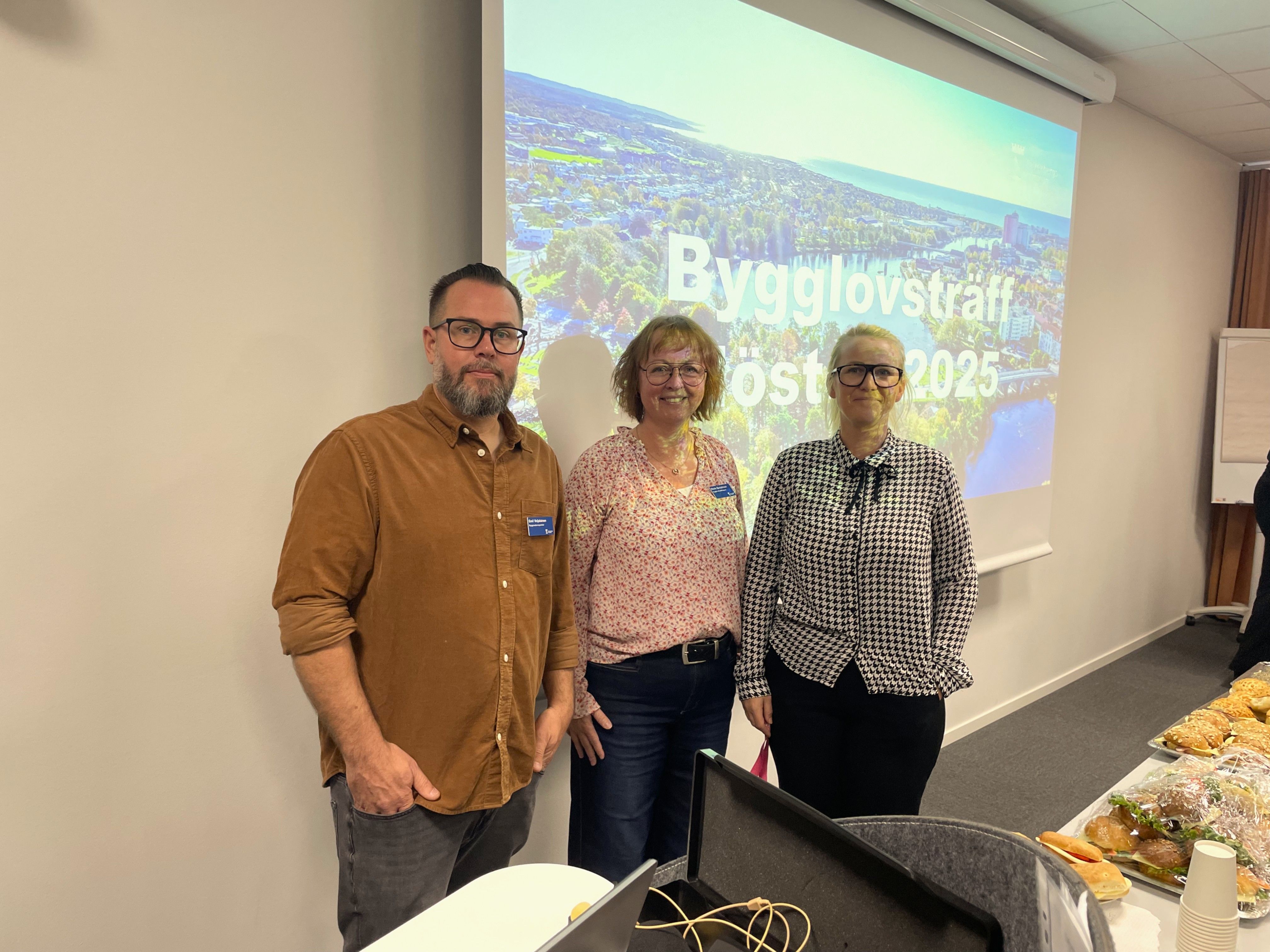 Emil Veijalainen, Marie Gustafsson och Veronica Engh från bygglovsenheten höll ihop träffen med branschen och svarade på frågor.