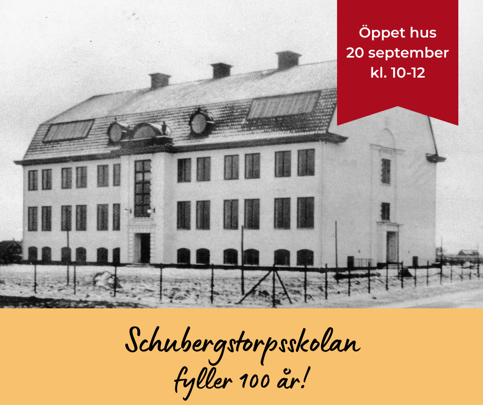 1925 öppnade Schubergstorpsskolan dörrarna för första gången. Hundra år senare står samma dörrar öppna igen – nu för att fira ett sekel av kunskap, gemenskap och utveckling. Lördagen den 20 september bjuds alla in till jubileumsfirande på skolan.