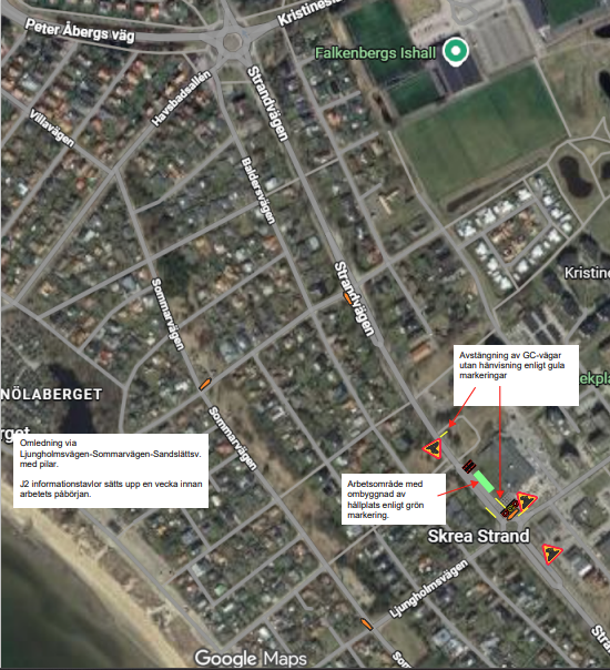 Orsak: Avstängningen genomförs med anledning av ombyggnation av busshållplatser vid cirkulationsplatsen Strandvägen/Ljungholmsvägen. Åtgärden är nödvändig för att arbetet ska kunna utföras på ett säkert och effektivt sätt för både trafikanter och entreprenör.
