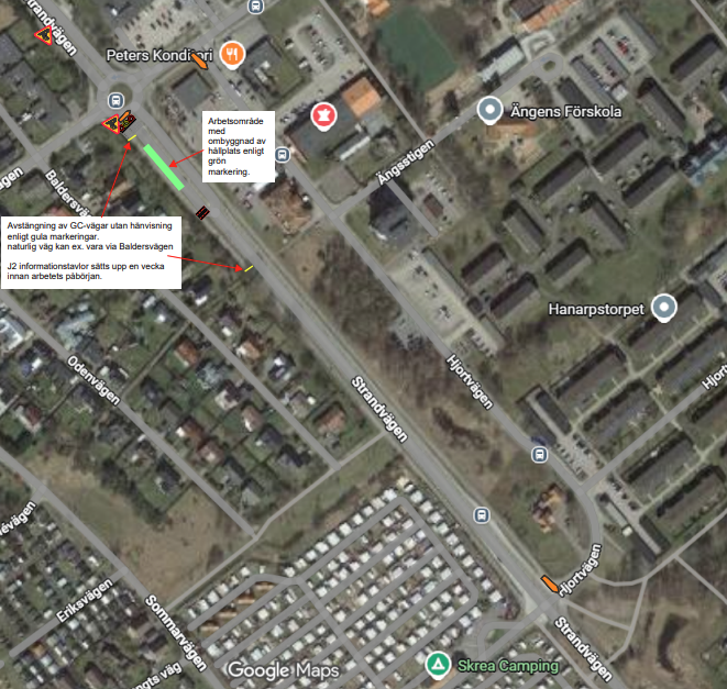 Avstängning av Strandvägen och omledning av trafik pga ombyggantion av busshållplatser
